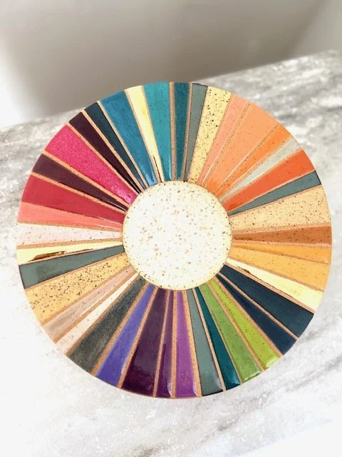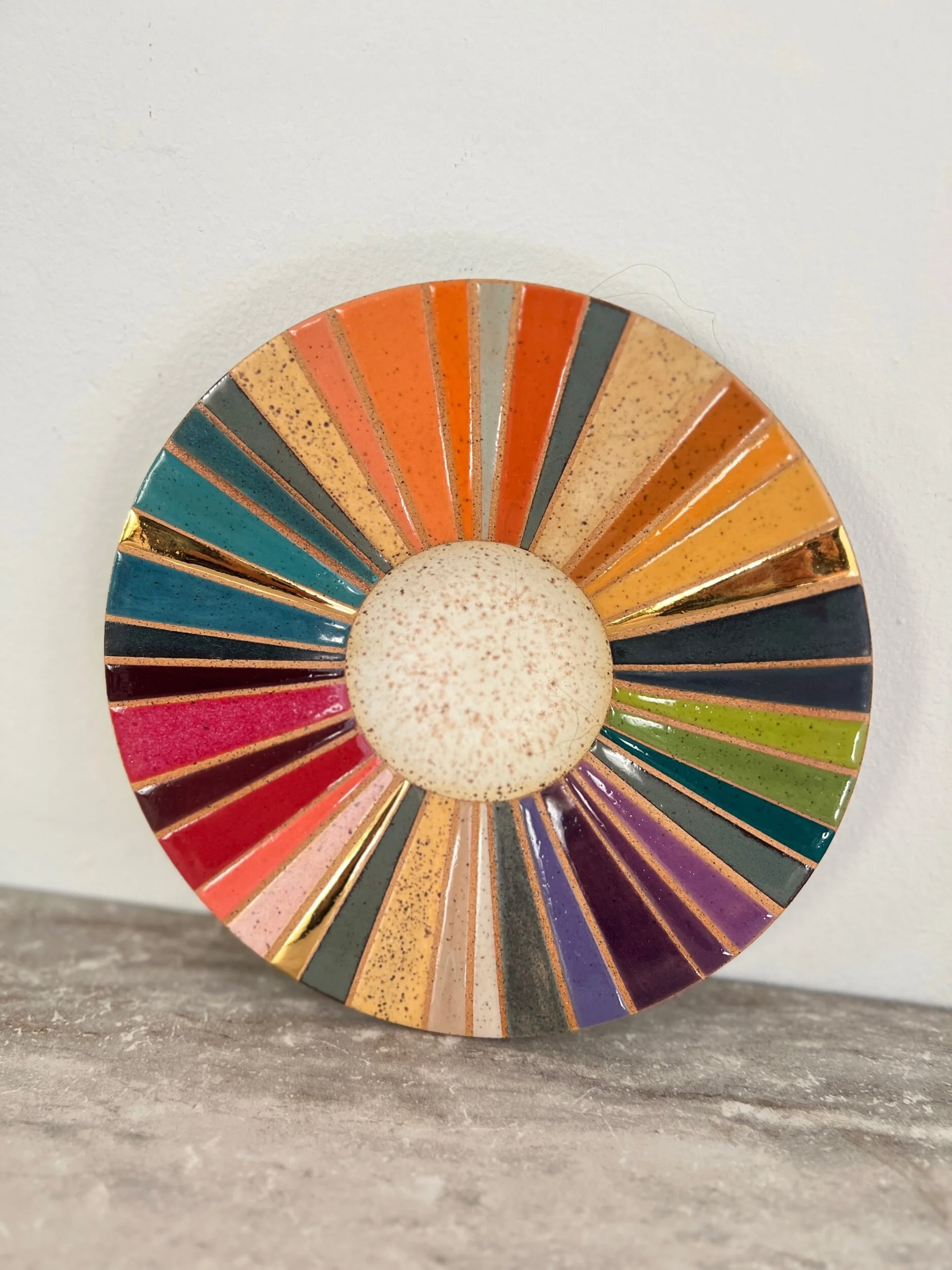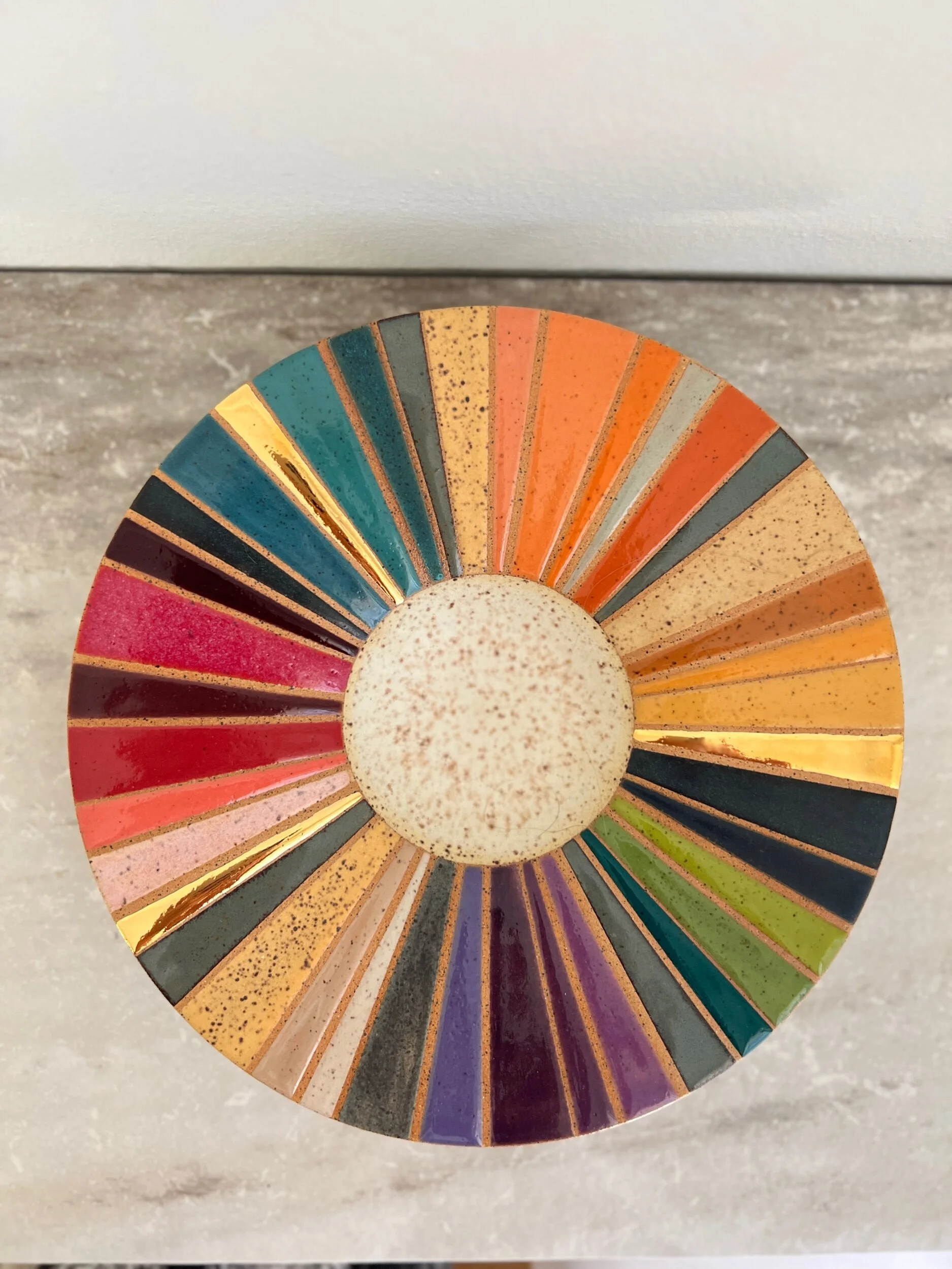 Hand thrown speckled stoneware, multiple glazes as pictured, 22k gold luster.