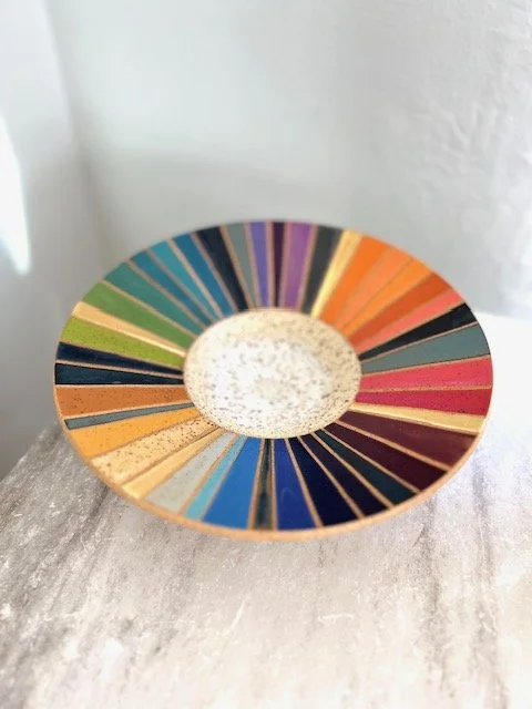 NOTE this offering dish is not intended for dining. Wet foods and cutlery on the colored and gold luster glazes are not advised. Decorative use only.