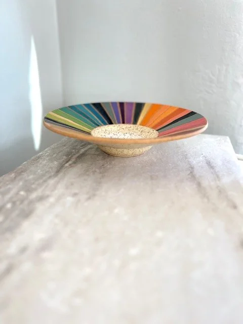 Hand thrown speckled stoneware, multiple glazes as pictured, 22k gold luster.