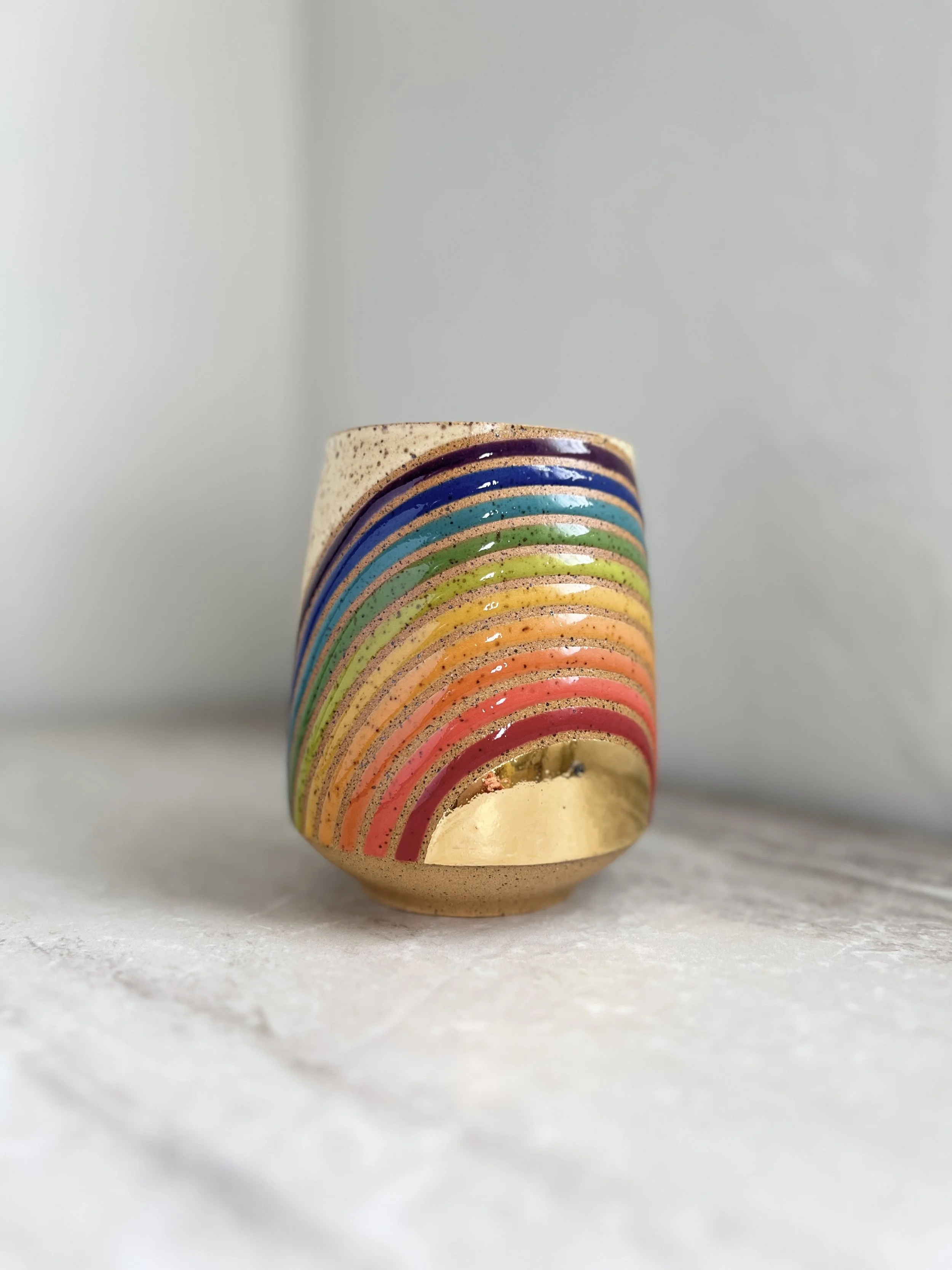 Hand thrown, speckled stoneware, multiple glazes as pictured.